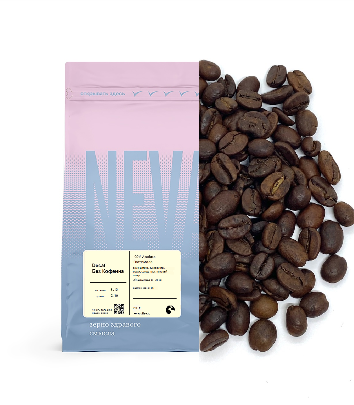 Без кофеина. Во вкусе цитрус, сухофрукты, орехи, солод, тростниковый сахар. Мы подобрали оптимальный отдельный профиль обжарки именно под кофе без кофеина, чтобы раскрыть его вкусовой потенциал. Кофеин удалятся из зеленого зерна, тем самым несколько меняя структуру зерна. Поэтому к такому зерну нужен особенный подход.